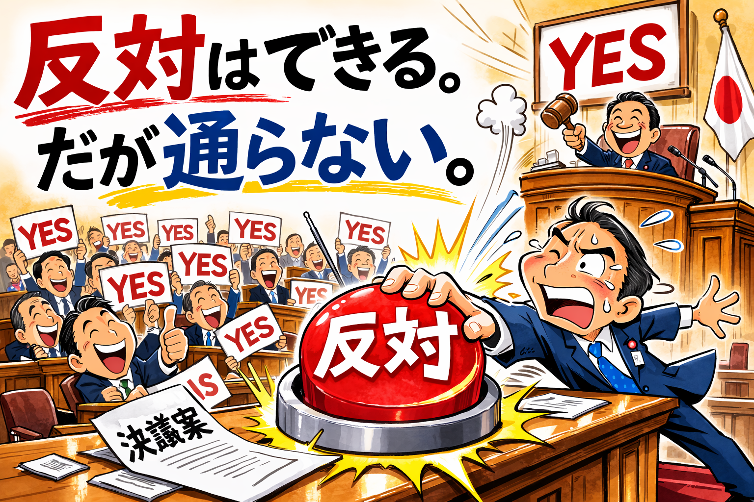 ・日本の国会では野党の決議案は否決されることが多い