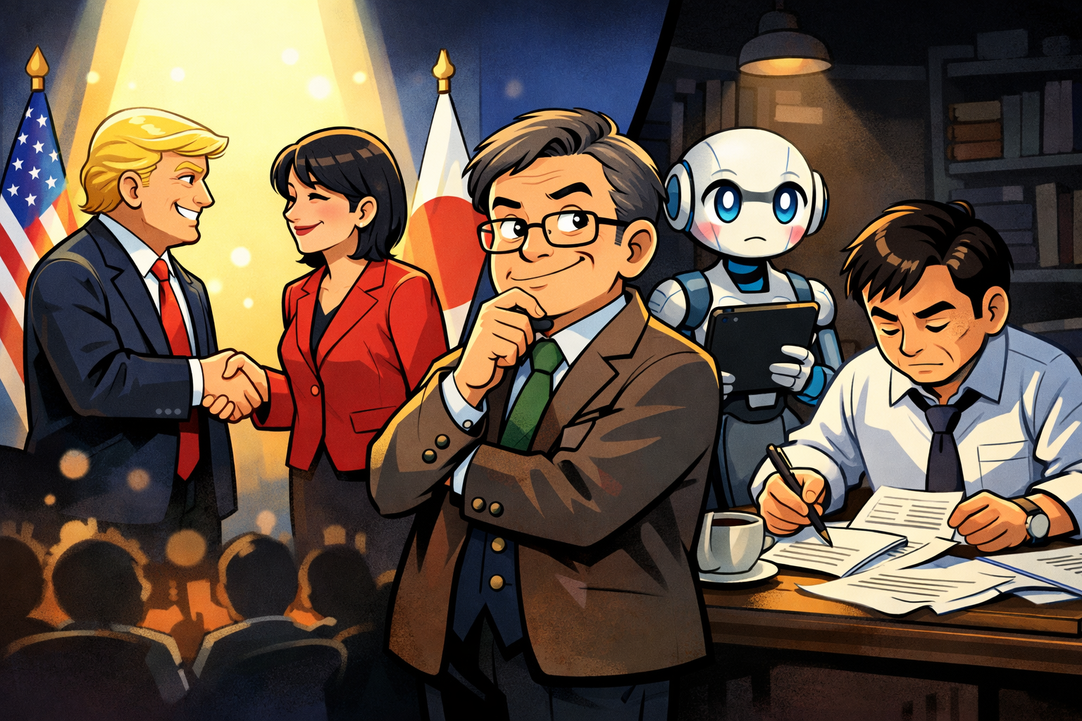 つまり、表で握手している二人は、すでに用意された台本の最終ページをめくっているだけ、ということか。